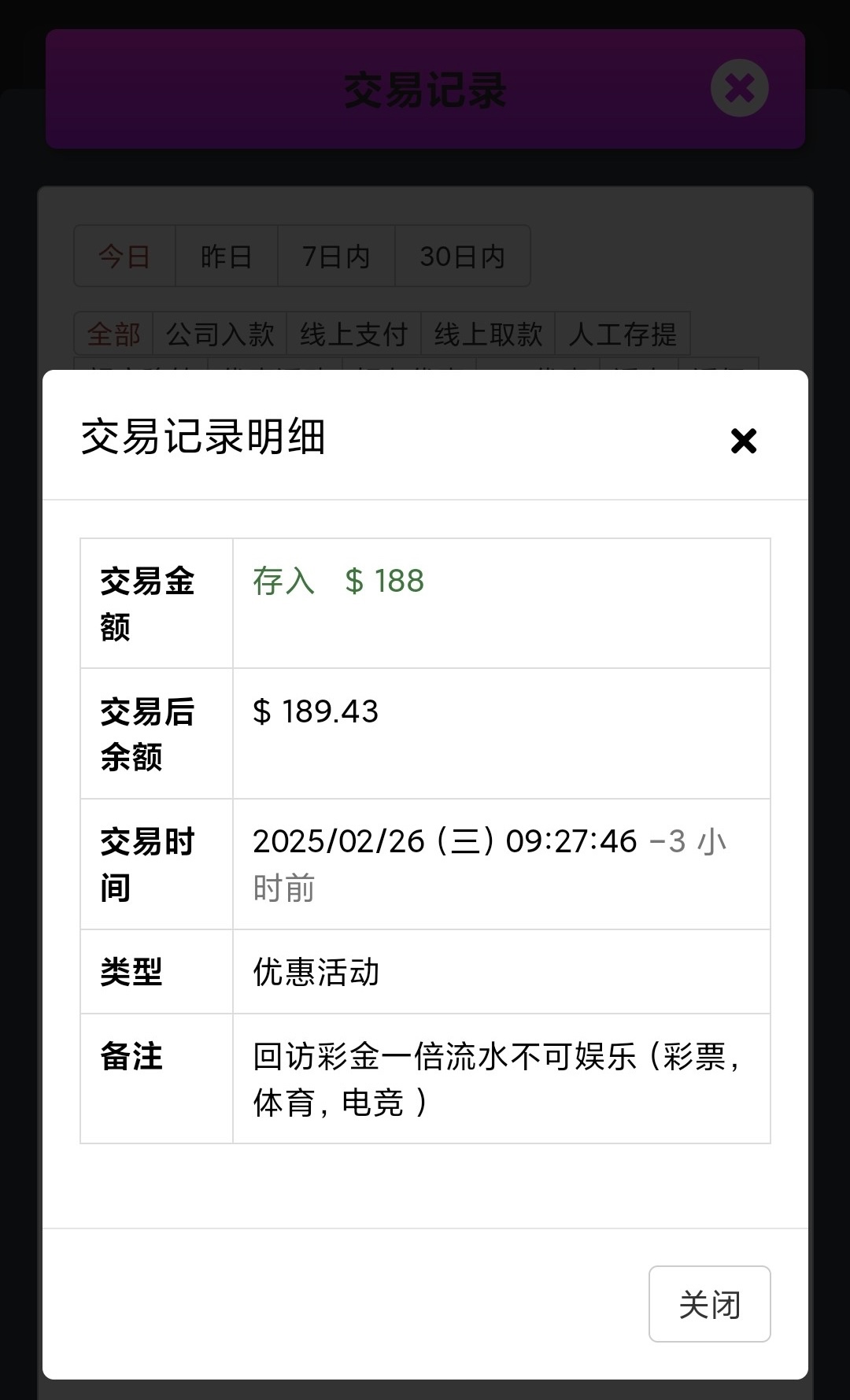 有号的兄弟可以上看看自己在不在回访名单,在的话是直接送的不用联系客服一倍流水,不能玩彩票电竞体育