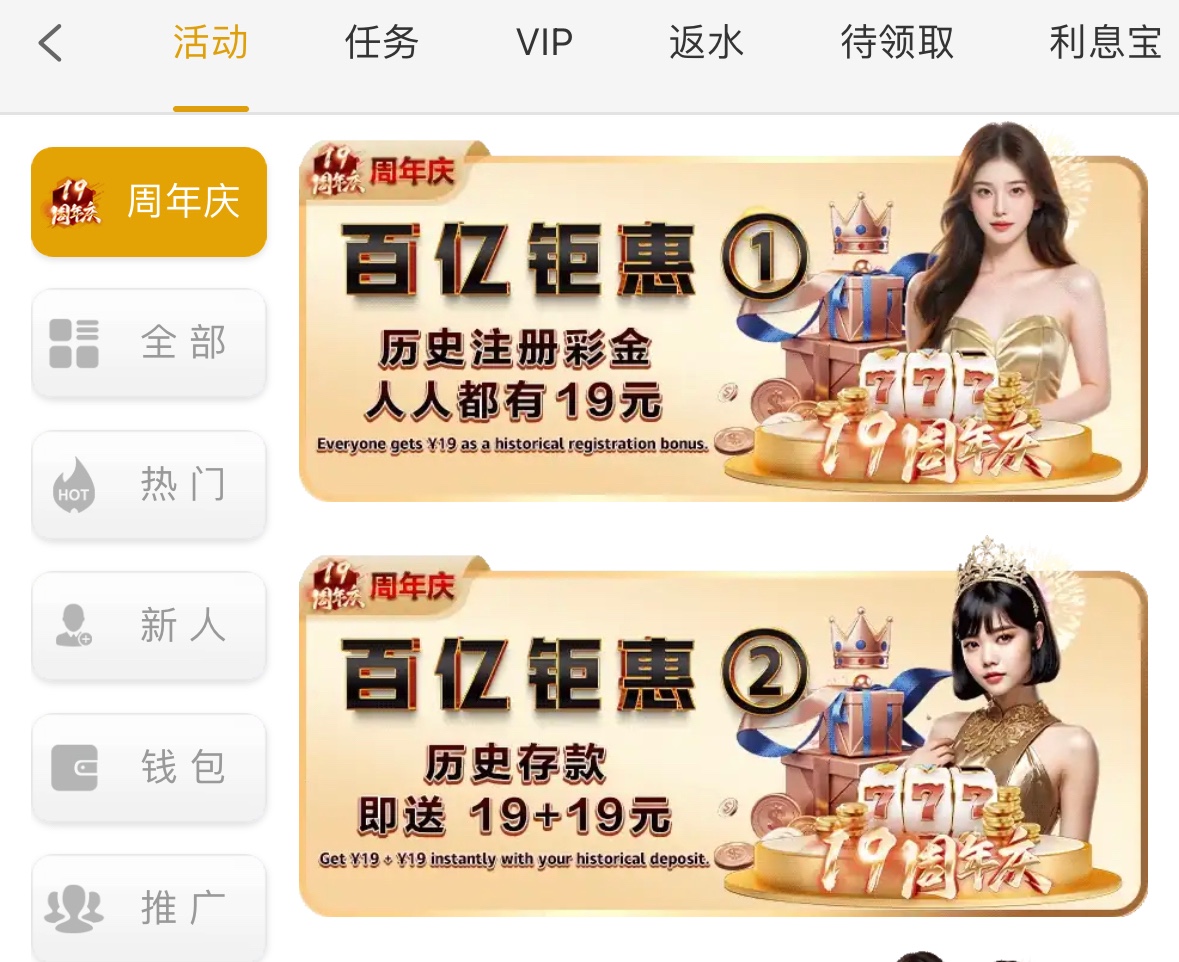 在8月8号之前注册存款低于51,存款低于5次下载APP登入领取19回馈彩金,仅限:PG电子,盈利到188取款,仅限:钱包取款