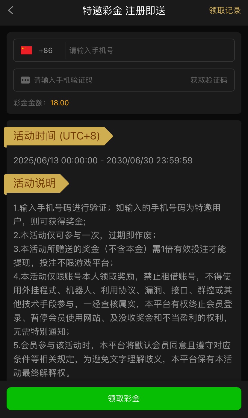 感兴趣的兄弟可以注册好在优惠里自助领取彩金