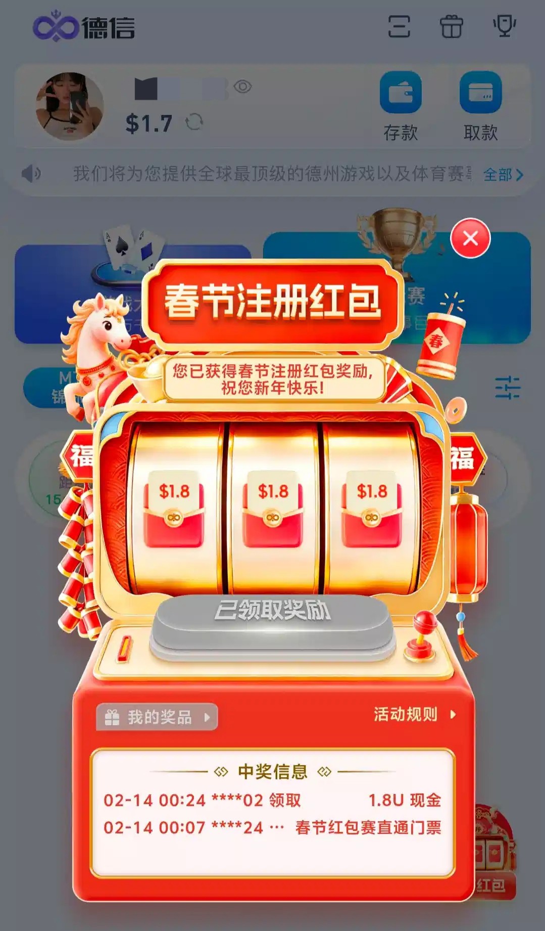 【德信】—✅— 新春注册红包