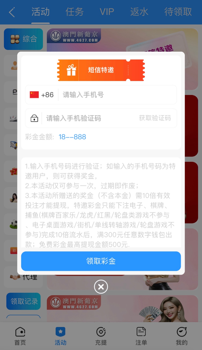 两个月前发过当时不是特邀的兄弟可以去看看自己是不是特邀,10倍流水,仅限电子棋牌捕鱼,满300提现最高提500