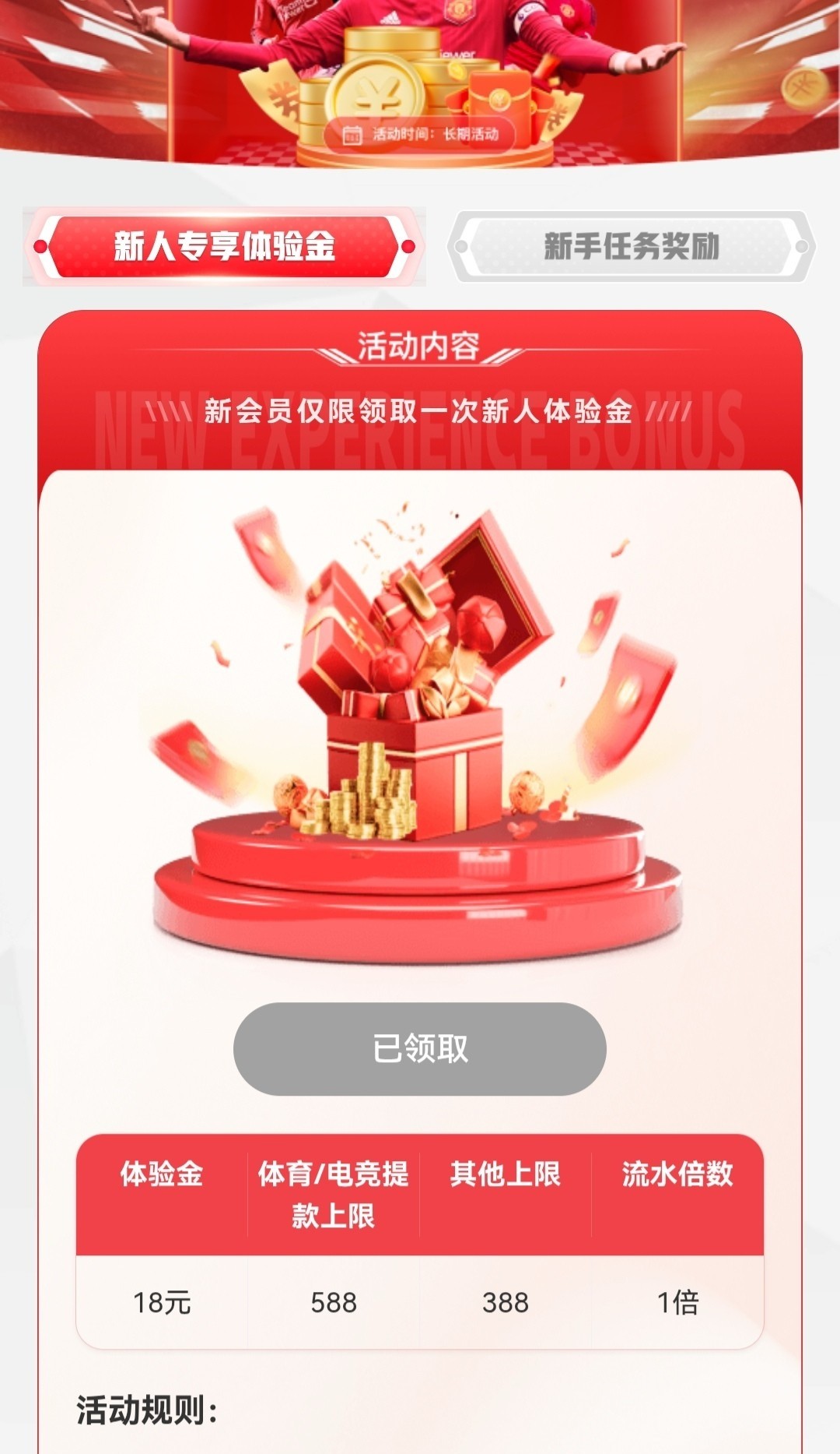 注册绑定手机号银行卡优惠里领取一倍流水